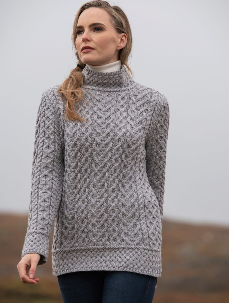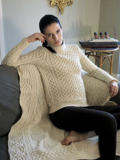 Aran Cable knit fisherman sweater made from 100% Super Soft Merino Wool