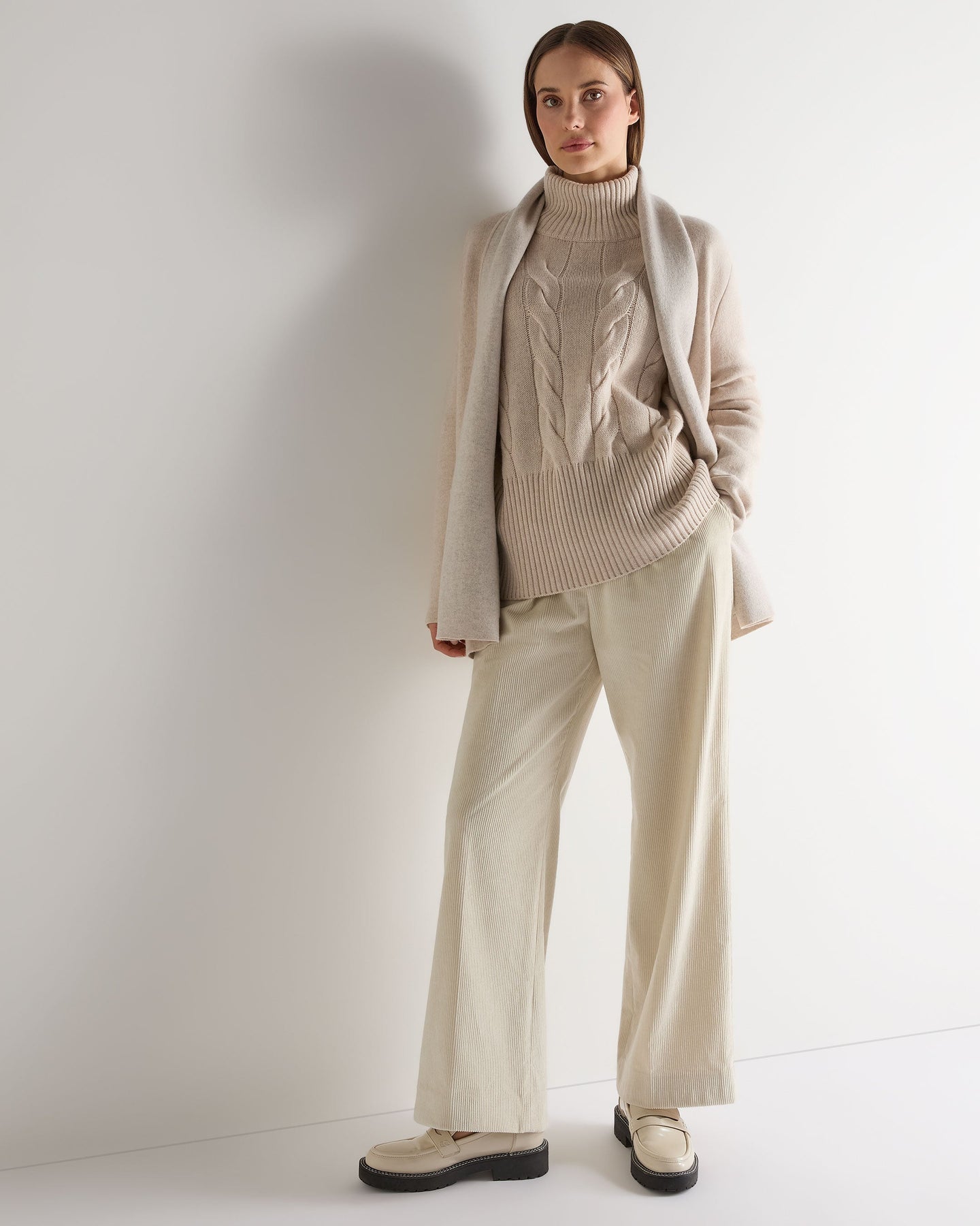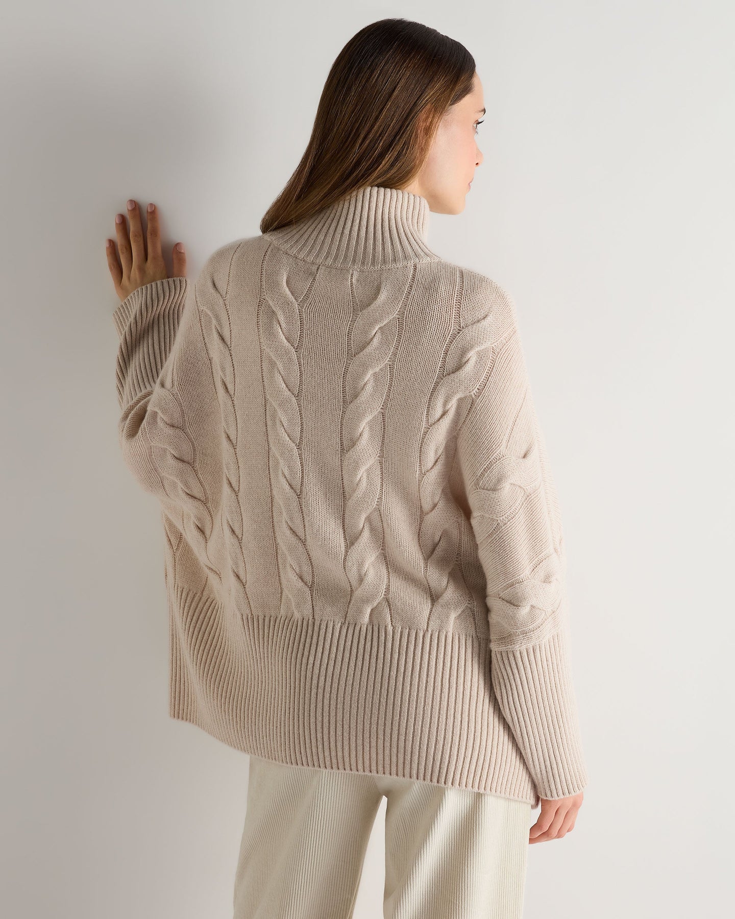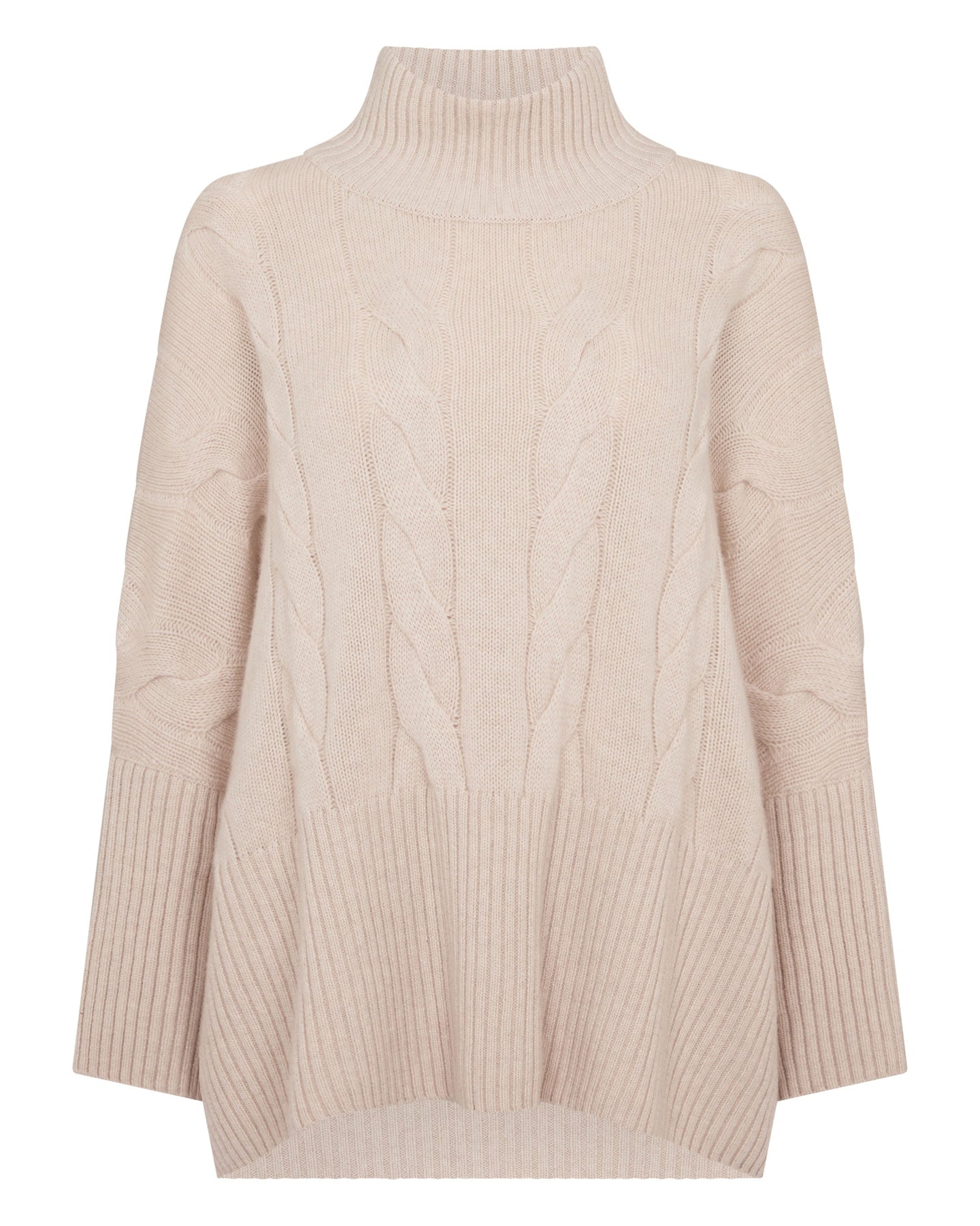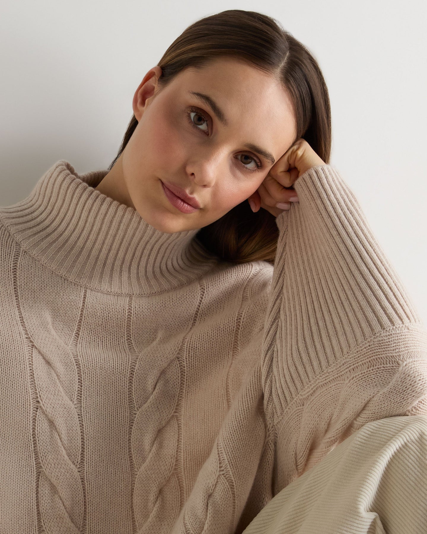 A new sweater which will be a definite cold-season cashmere favourite with a modern, oversized twist. This cable-knit sweater is made for relaxed layering, spun in sumptuously soft organic N.Peal cashmere. A chunky ribbed hem and cuffs balance the generous silhouette, while a ribbed funnel neck completes the look with clean-lined comfort.